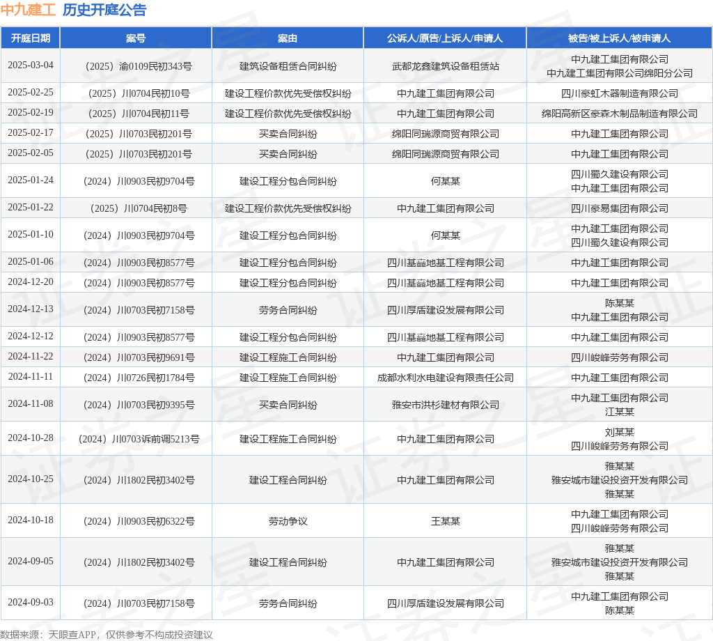 本站消息,根据天眼查APP显示,近日公布了一则中九建工集团有限公司作为原告/上诉人的开庭公告,详细内容如下: